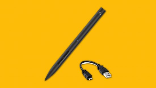 Ele vem com um carregador USB-C e, embora você possa usar a caneta enquanto ela carrega, o cabo fornecido é comicamente curto para isso.